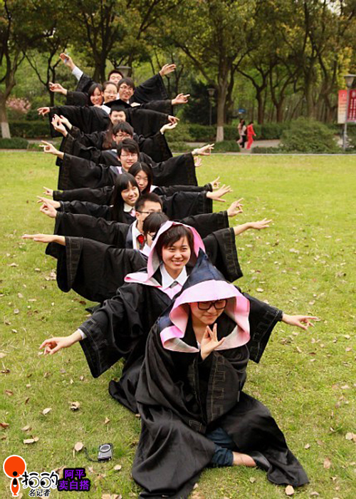 上周日,寧大的學(xué)子們?cè)谂漠厴I(yè)照,瞧他們的千手觀音造型,挺可愛(ài)的。