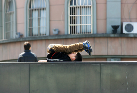 暖風(fēng)拂面的四月,東錢湖水上花園春色爛漫。剛剛表演完舞蹈的姑娘們,身穿無袖短裙穿過花園,上演著一幅清涼一“春”的景象!