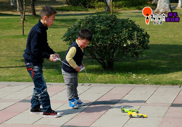 兩個(gè)小男孩在日湖公園玩賽車,足以讓80、90后想起童年的美好時(shí)光。