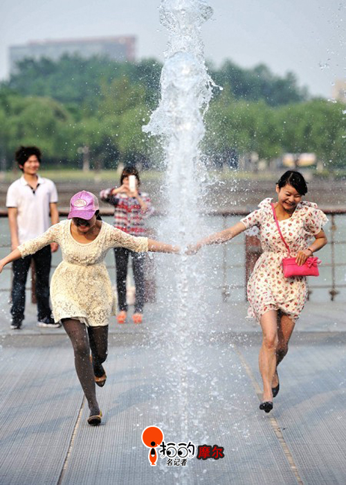 中國寧波網(wǎng)手機(jī)記者摩爾:前幾日,寧波市區(qū)創(chuàng)下今年以來最高氣溫的紀(jì)錄,32.3℃!悶熱的天氣讓人有點(diǎn)難以承受,但人們卻用自己的方式來迎接初夏的到來,這幾張照片記錄了市民在和義大道噴泉旁愉快玩耍的片段。