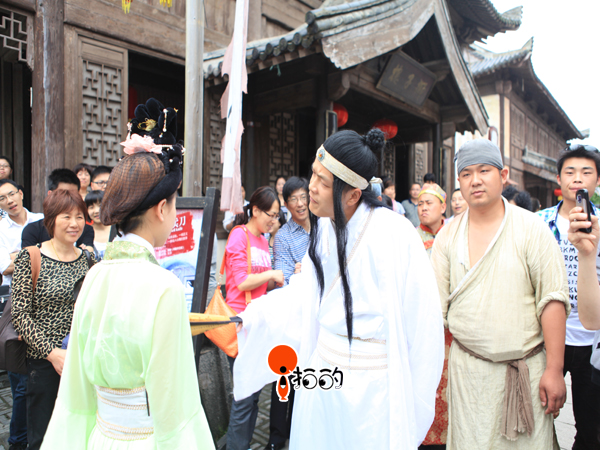 當(dāng)然人氣最高的要算是在“怡春院”的“拋繡球”表演,盛裝打扮的宋代新娘,對(duì)著臺(tái)下黑壓壓的觀眾,猶豫再三,終于把繡球向自己的“如意郎君”投去,這位小伙子當(dāng)然也不負(fù)眾望,排除萬(wàn)難,終于抱得美人歸。臺(tái)上精彩表演,臺(tái)下觀眾掌聲如潮。