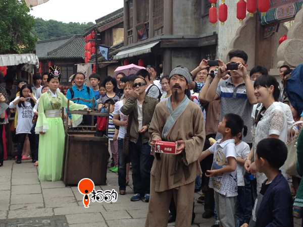 拍客們首先參觀了神雕俠侶城,整座影視城建筑以宋代風(fēng)格為主,古戰(zhàn)場(chǎng)、歸云莊、活死人墓等這些電視劇里耳熟能詳?shù)牡孛鹆舜蠹覞夂竦呐d趣,個(gè)個(gè)加快了腳步,想要一探究竟,繞過一片不大的樹林后,便恍如穿過了時(shí)光隧道。踏著鵝卵石或青磚鋪成的小道,徜徉在古色古香的襄陽(yáng)古城,周圍是瓦頂青磚的小樓,偶爾還有幾位宋裝打扮的工作人員經(jīng)過,要不是看見周圍的人紛紛拿出了現(xiàn)代化的攝影器材,真有一種回到宋朝的感覺。