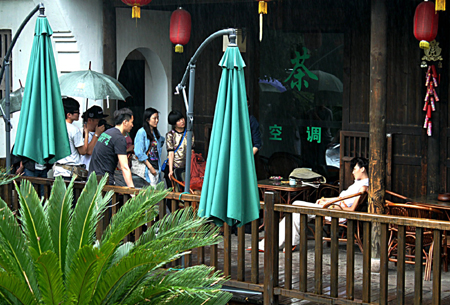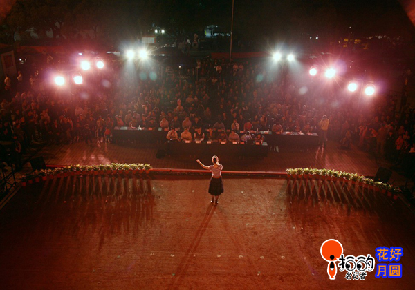 中國寧波網(wǎng)I拍記者花好月圓:每個(gè)人看表演都會(huì)在舞臺(tái)前面,舞臺(tái)背后會(huì)是什么樣子呢?我在舞臺(tái)背后找到一個(gè)制高點(diǎn),這個(gè)是絕佳的位置,從這里望下去觀眾一覽無余,場面挺大,光影效果也不錯(cuò)!