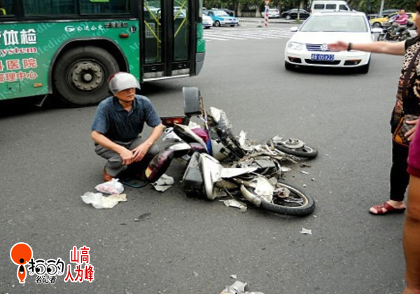 中國寧波網(wǎng)i拍記者山高人為峰:6月21日早晨6點50分,在江東大步街與新河路口,756路公交車右轉(zhuǎn)彎擦倒直行電動車,車輪從電動車碾壓上過去沖向隔離欄后停下,“神奇”的是,電動車被碾壓粉碎,而騎車的大叔卻一點沒事,路人在為這位大叔“慶幸”人沒事的同時,還得記住:開車的騎車的,總還是安全第一才萬幸!