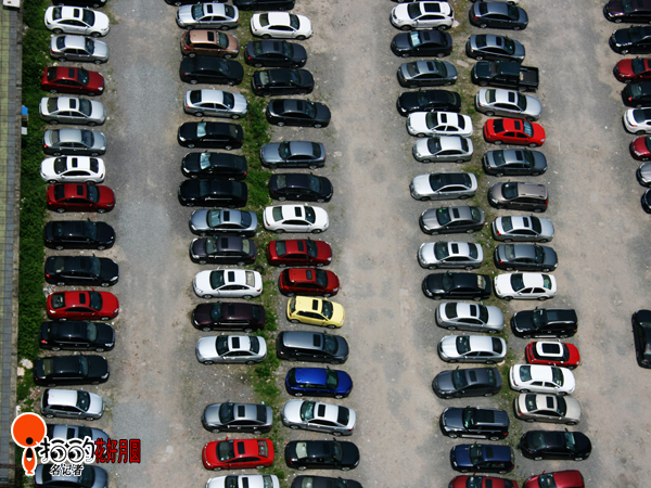 單位樓下的停車場,密密麻麻地停滿了車。拍完回家在電腦上一看,像不像商場玩具柜臺里那些排得整整齊齊的汽車模型?