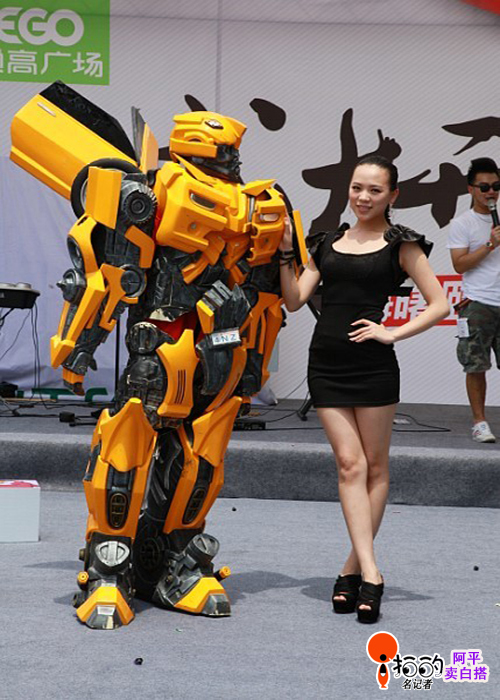 中國(guó)寧波網(wǎng)“i拍”記者阿平賣(mài)白搭:前幾日,寧波頤高數(shù)碼開(kāi)業(yè)現(xiàn)場(chǎng),一模特與“大黃蜂”同臺(tái)表演,比比誰(shuí)更靚!