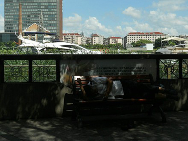 中國(guó)寧波網(wǎng)“i拍”記者山高人為峰:外灘邊,一位保安大哥橫躺在路邊的座椅上睡覺。雖說大中午休息一下,無可厚非,可這地方,選得實(shí)在不妥。不知道這位保安所在的工作單位,能不能考慮一下,為這些工作人員提供一個(gè)合適的午休場(chǎng)所。