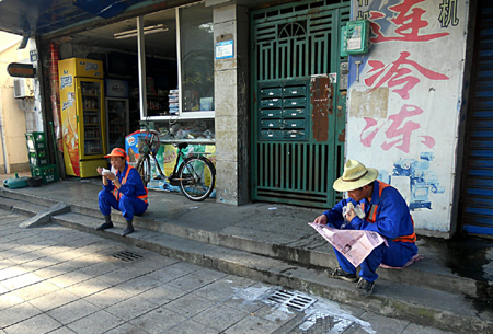 民安路一小店前,“兩小無猜”,玩牌對博,有牌有幣......從小就學(xué)會了“斗牛”,些許還“聰明”的,唉,只是小不教誰之過呢!