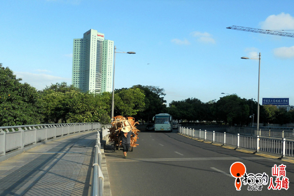 中國寧波網(wǎng)“i拍”記者山高人為峰:甬江大橋,橋的兩邊,集人行道、非機(jī)動(dòng)車道,盲道三道于一道,也就二米多點(diǎn)寬吧,引橋下坡段有些被樹木占有的地方才只有一米寬點(diǎn),如此“小板車”拉行于機(jī)動(dòng)車道上也就不為奇怪了!