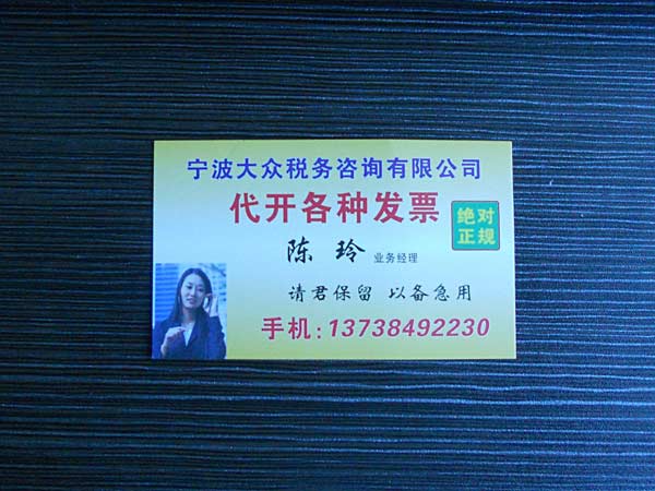 :“美女”代開發(fā)票的小廣告隨處可見,還注明“絕對正規(guī)”,這樣的名片不明擺著騙人嗎!大家可不要存僥幸心理,起貪念之心!