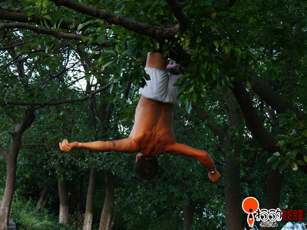 瞧這晨練方式還真新鮮,難道這就是傳說(shuō)中的倒掛金鐘?