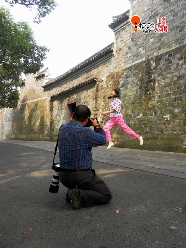 慈城,古鎮(zhèn)小巷,MM彈跳“飛”得辛苦,大師單腿跪膝拍得也賣力。這位MM很靚哦,有木有!