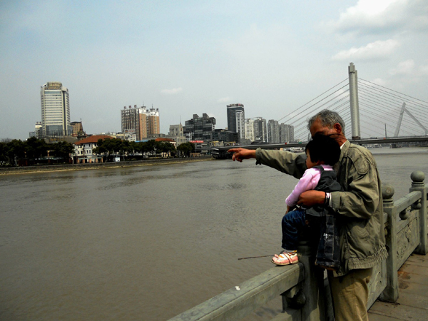 :三江口岸的風(fēng)景不錯,祖孫二人,天倫溫馨;只是這位姥爺你可得當(dāng)心哪,孩子的安全疏忽不得。