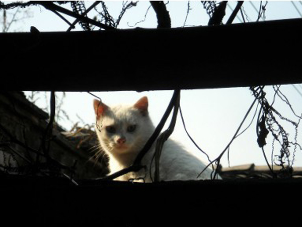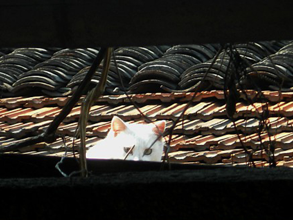 :屋檐外,曬太陽,“喵星人”一個(gè)回眸,眼神邈遠(yuǎn),警惕瞭望……