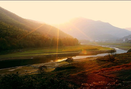 古村清早,一位大嬸正在村河邊清洗小菜,河水微波蕩漾,美麗如畫(huà)。于是,我立即按下了快門(mén)。