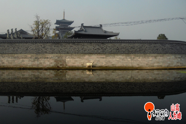圍院墻下一山羊,閑情獨(dú)游小河邊,清清河岸無(wú)青草,孤影水中自徘徊。