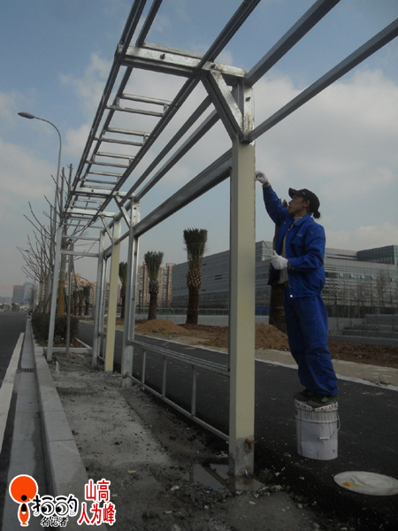 藍(lán)天白下,油漆工,立于桶上,用色彩涂抹著生活的“藝術(shù)家”。