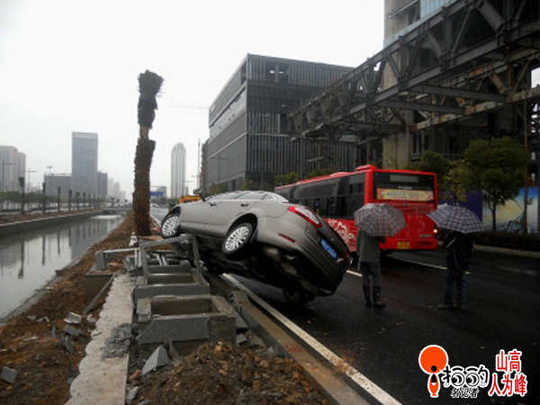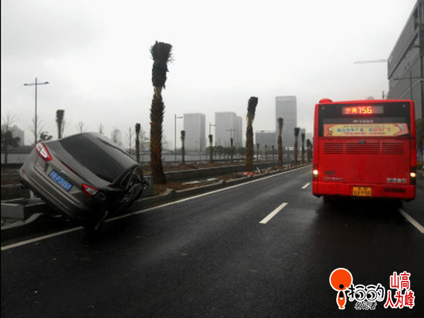 中國寧波網(wǎng)“i拍”記者山高人為峰:驚駕東路上一輛福特小車左轉(zhuǎn)彎時速度過快,被直行的756路公交車扛上了。長安福特車學(xué)起了“鳥叔”當(dāng)場跳起了江南style……幸運(yùn)的是被路邊的石礅擋了一下,否則就要跳到河里去了。