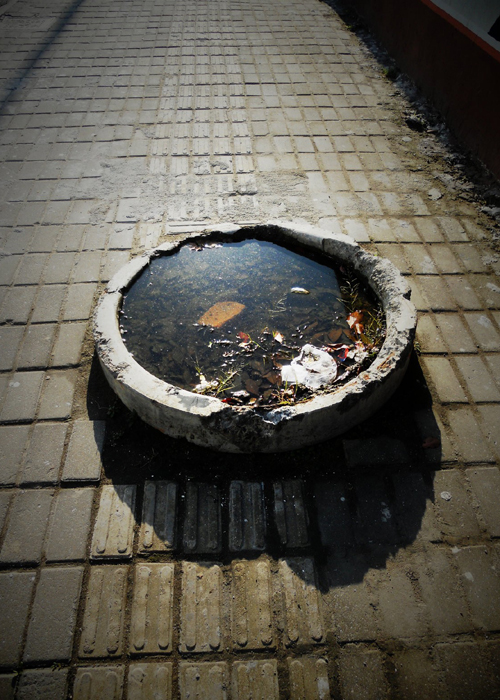 江東通途路上,慶豐橋下南面,路邊人行道上的盲道中間有一口“水井”擋道了......走過的,路過的,看見的,沒看見的,都得小心喲。