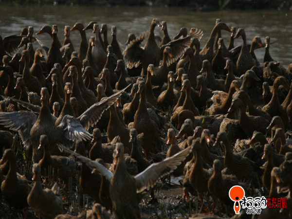 趕鴨子過橋下河,群鴨嬉水,嘎嘎嘎……