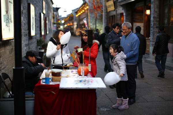 中國(guó)寧波網(wǎng)“i拍”記者E網(wǎng)情生:南塘老街里面寧波特色的小吃很多,余姚黃魚(yú)面、寧海前童香干、鎮(zhèn)海十六格餛飩、鼓樓油贊子……在這條古色古香的老街里,自然少不了傳統(tǒng)藝術(shù)----糖畫(huà)。畫(huà)面中的小女孩被各式精美的糖畫(huà)吸引住了!南塘老街,老寧波人小時(shí)候的記憶!