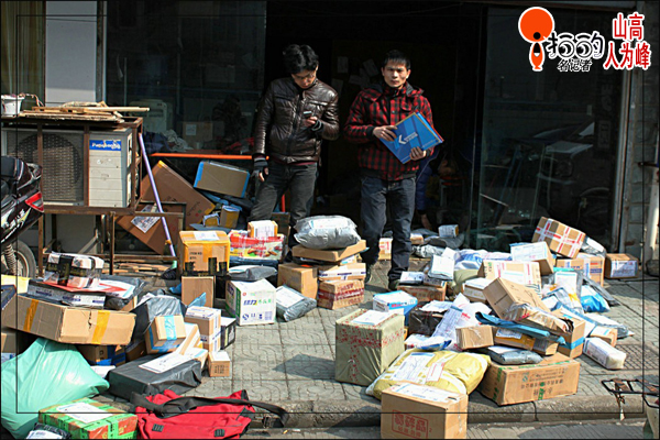 2013、2、21,晴轉多云。新年剛過,江東路邊一站點,快遞員清點門口滿地的包裹,生意又將忙碌起來......親,你開始網購了嗎?
