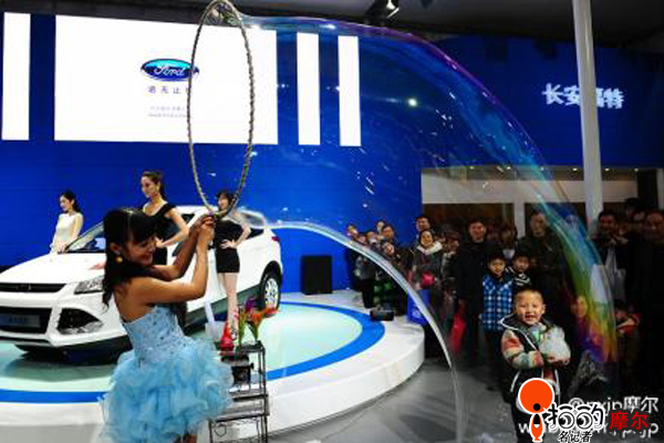 寧波車展上,原來被美女模特吸引的目光都轉(zhuǎn)移到泡泡秀孩子的身上了。