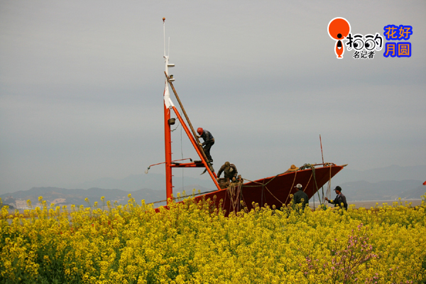鄞州區(qū)海邊的一處漁村,岸邊野生油菜花“占領”了漁船停靠的土地。遠遠望去,船似乎在花海里航行一般。