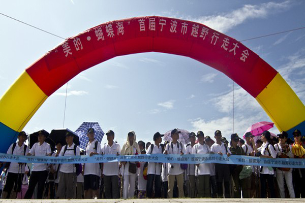 昨天上午,我市300多位戶外運(yùn)動(dòng)愛好者人人手持兩根步行杖,在梅山保稅港區(qū)參加了今年我市全民健身月主題活動(dòng)之一———“美的·蝴蝶海”首屆寧波市越野行走大會(huì)。