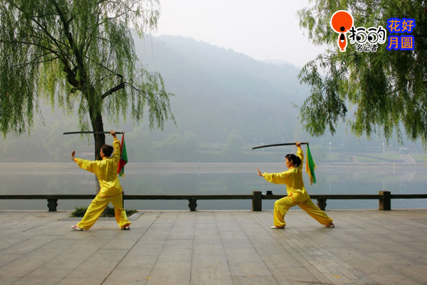 清晨在公園,市民雙劍齊舞,強(qiáng)健體魄,提振精神。