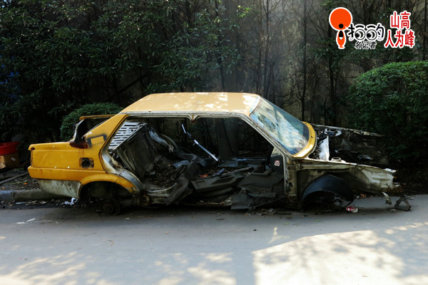 一輛出租車,能拆的都拆了,丟落在路邊不知有了多少年,“破爛王”沒看見,城管也沒看見......