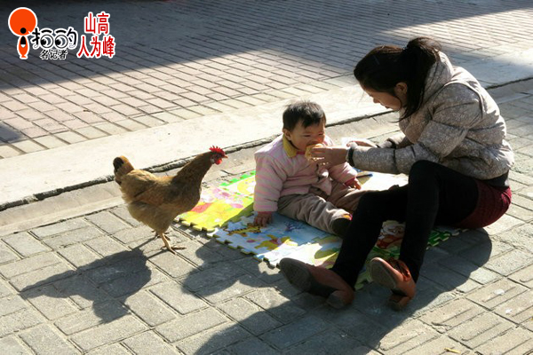 寶貝喂食,母雞圍觀
