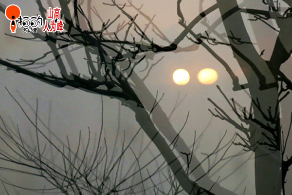 霧霾的天空,顯現(xiàn)出雙簧“太陽(yáng)”。