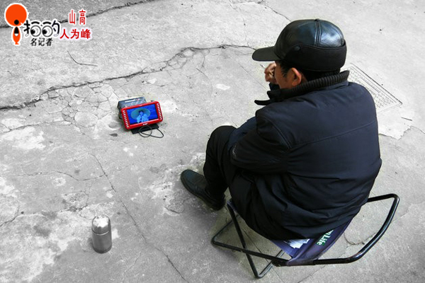2014、1、28、晴。一支煙,一杯茶,清閑獨(dú)坐,悠然看戲的老人......