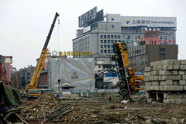 “擎天柱”現(xiàn)工地?原是吊車(chē)作業(yè)