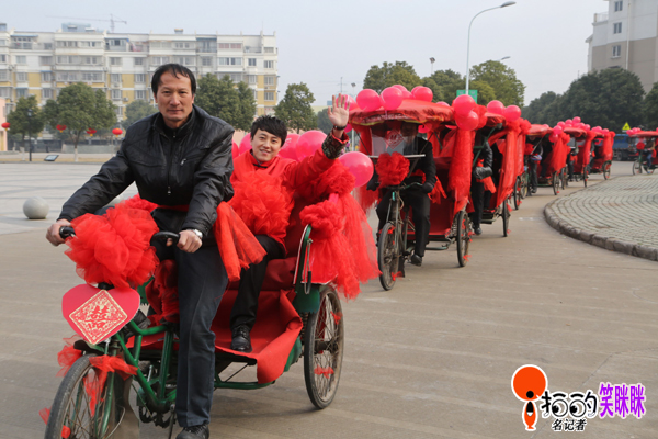 中國寧波網(wǎng)“i拍”記者笑瞇瞇:2014年,2月22日來自遼寧的小伙子畢亮用裝扮漂亮的三輪車娶北侖姑娘鮑如意,既倡導(dǎo)了綠色環(huán)保又喜慶拉風(fēng),每到一處吸引市民的眼球!