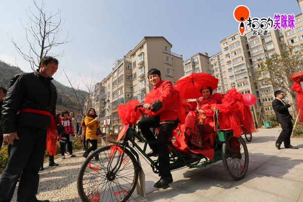 2014年,2月22日來自遼寧的小伙子畢亮用裝扮漂亮的三輪車娶北侖姑娘鮑如意,既倡導了綠色環(huán)保又喜慶拉風,每到一處吸引市民的眼球!