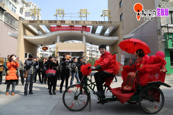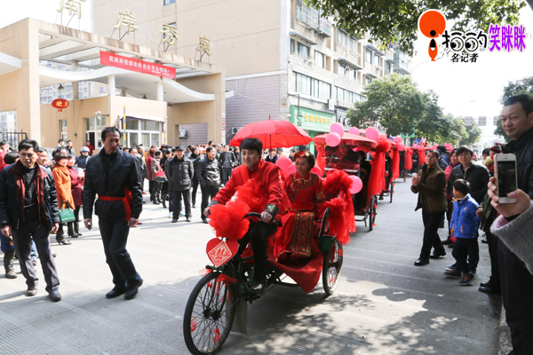 2014年,2月22日來自遼寧的小伙子畢亮用裝扮漂亮的三輪車娶北侖姑娘鮑如意,既倡導(dǎo)了綠色環(huán)保又喜慶拉風,每到一處吸引市民的眼球!