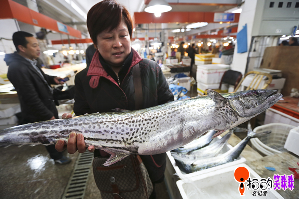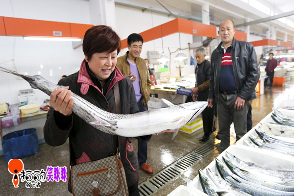 2014.3.28早,咸祥菜場里,水產(chǎn)經(jīng)營戶正在售賣馬鮫魚。每年清明前后,藍點馬鮫魚最為鮮美。