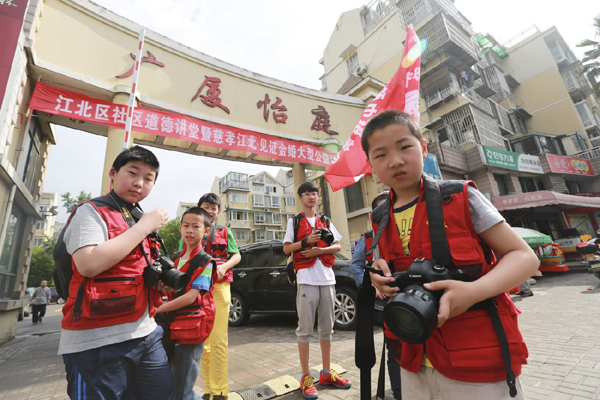 中國寧波網(wǎng)“i拍”記者笑瞇瞇:5月25日上午,寧波市青少年宮“紅領(lǐng)巾攝美團”10多位小朋友在朱盛珊老師的帶領(lǐng)下來到江北區(qū)廣廈怡庭社區(qū)為老人們拍金婚紀(jì)念照,度過了愉快而有意義的一天!