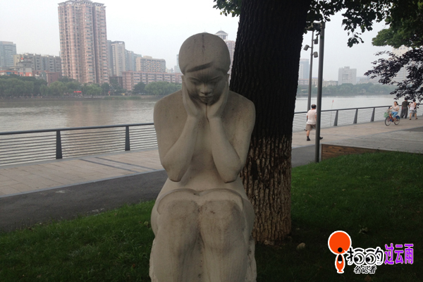 少女”獨(dú)自沉思,絲毫不受過往市民的影響