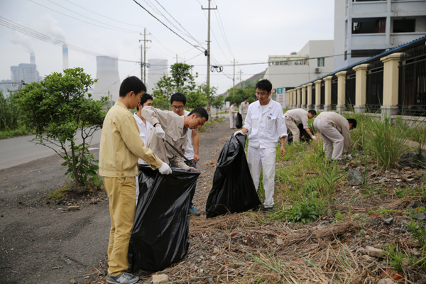 6月5日是第44個(gè)“世界環(huán)境日”,也是中國新環(huán)保法實(shí)施后的首個(gè)“環(huán)境日”,為了契合今年“踐行綠色生活”主題,增強(qiáng)員工環(huán)境意識、節(jié)約意識、生態(tài)意識,形成人人、事事、時(shí)時(shí)崇尚生態(tài)文明的社會新風(fēng)尚,6月3日下午,國華寧海電廠組織開展世界環(huán)境日義務(wù)勞動活動,近80名黨員同志在電廠附近的生活區(qū)道路與強(qiáng)蛟鎮(zhèn)中學(xué)道路周邊進(jìn)行撿垃圾、打掃衛(wèi)生。圖為國華寧海電廠黨員在電廠附近道路上撿垃圾,為創(chuàng)建美麗家園貢獻(xiàn)一份力量。(通訊員鄭慧慧攝)