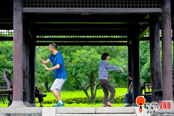 空氣清新的早晨,老年人在公園里打太極,舒展舒展筋骨。(拍客上班前攝于月湖)