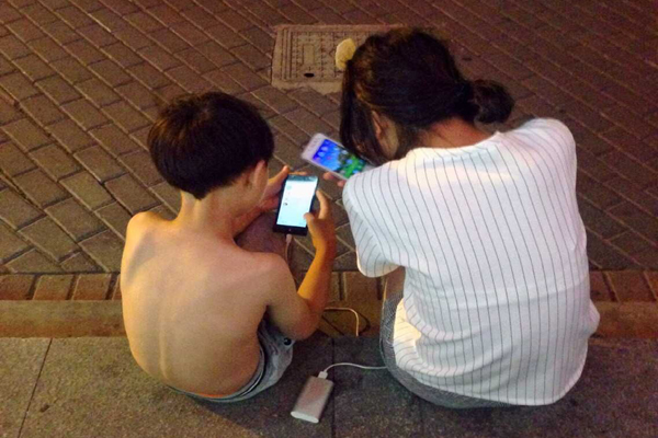 月湖橋頭納涼人