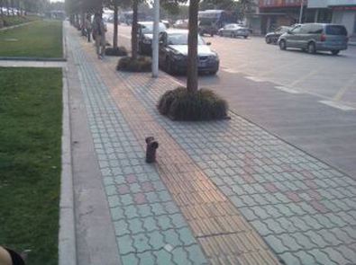 盲道上“長”了消防栓