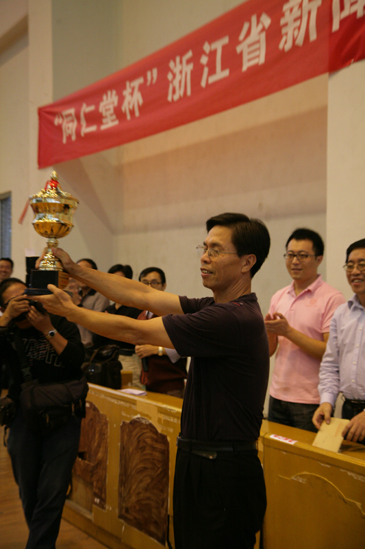 本次比賽為慶祝第10個中國記者節(jié)和浙江省記協(xié)成立60周年而舉辦,由省記協(xié)主辦,溫州市記協(xié)承辦,比賽得到了北京同仁堂科技發(fā)展有限公司冠名贊助。寧波記協(xié)隊由寧波日報報業(yè)集團和寧波廣電集團的10名在職人員組成,年齡最大的選手52歲,40歲以上的選手了占了三成。