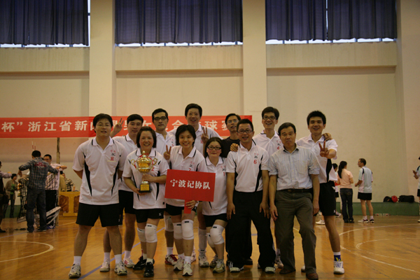 本次比賽規(guī)定,每方上場隊員必須是四男兩女。比賽分兩個階段進行,參賽球隊先進行單循環(huán)排名賽。在單循環(huán)排名賽中,寧波記協(xié)隊先是以3:0戰(zhàn)勝浙江廣電集團隊,然后以1:3不敵溫州記協(xié)隊,隨后以3:1戰(zhàn)勝浙江日報報業(yè)集團隊,在第一階段排名第二,與排名第一的溫州市記協(xié)隊攜手進入冠亞軍決賽。決賽中,寧波記協(xié)隊以3:0(26:24、25:14、25:22)戰(zhàn)勝了溫州記協(xié)隊一舉奪得冠軍。