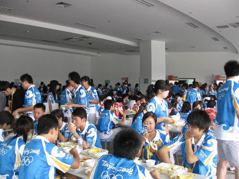 除了志愿者以外,還有很多牌子上面有“S”記號的人們,他們作為奧運(yùn)安保工作(Security)的成員,大多比志愿者有著更高的權(quán)限(我看到過N個藍(lán)2456的牌子,可以出入某場館所有的地方,都是安保的),當(dāng)然,他們的肩上也負(fù)擔(dān)著更加重要的工作。除了藍(lán)色的志愿者們,還有穿紅色的帶薪工作人員,也出入于大街小巷地鐵之中,給奧運(yùn)平添一筆色彩。令人感動的是,許許多多的城市志愿者,坐在城市的各個角落,給志愿者發(fā)票,維持秩序,指揮交通,雖然不起眼,卻成為了城市舉辦奧運(yùn)的基石。