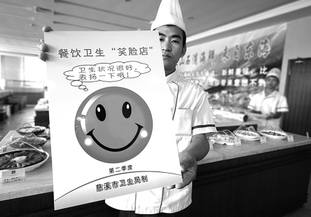 “笑臉行動”首先由衛(wèi)生監(jiān)督員對該單位的衛(wèi)生許可證、餐飲具消毒、加工場所環(huán)境衛(wèi)生、從業(yè)人員健康證明、食品加工過程等情況逐項進行打分。綜合得分100分以上的給予“笑臉”;70分及70分以上,不足100分的給予“平臉”;70分以下的則給予“苦臉”。評比結果以“臉譜”方式懸掛在店門口,直至對該單位的下一次衛(wèi)生監(jiān)督時為止。