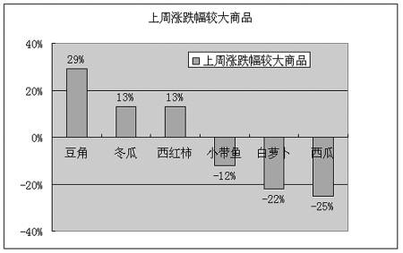 上周,寧波市場(chǎng)的鮮肉價(jià)格平穩(wěn),水產(chǎn)批發(fā)價(jià)格微降3.5%。上周的寧波生活必需品監(jiān)測(cè)數(shù)據(jù)顯示,在76種菜籃子、米袋子、奶品等商品中,35種商品價(jià)格上漲,25種商品價(jià)格下跌,16種商品價(jià)格持平。其中,漲幅在30%-40%的有1種,漲幅在20%-30%的有2種,漲幅在10%-20%之間的有3種,漲幅低于10%的有29種。漲幅較大的商品有青椒、豆角、圓白菜、冬瓜,跌幅較大的商品有西瓜、白蘿卜、黃瓜、冬瓜、小帶魚(yú)。
